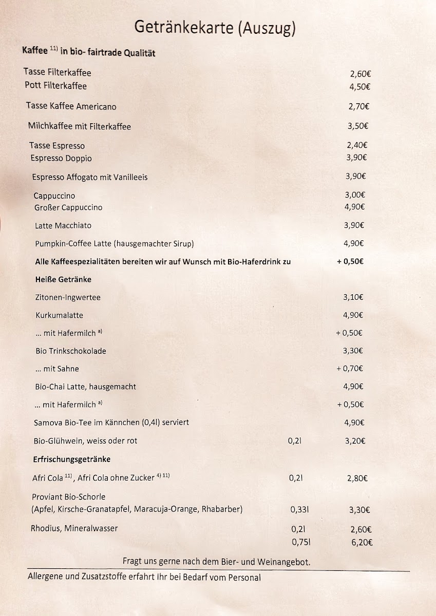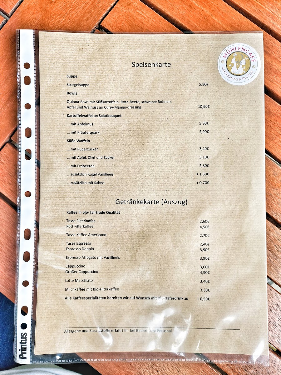 Mühlencafé Menu